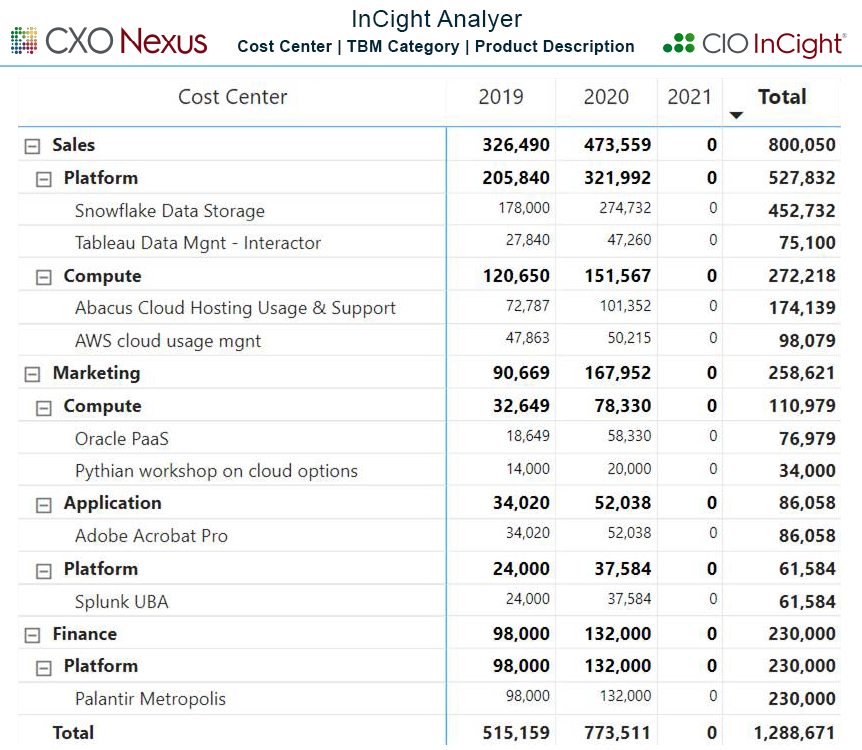 “Lack of functionality from our in place financial systems combined with our inability to analyze T&E and P Card spend via homegrown processes had left us in the dark on business led IT spend. CIO InCight’s automated functionality, including Cost Center and Categorization views of our vendor spend, enables us to centralize all IT purchasing. By eliminating discrete purchasing by the lines of business, we have greater leverage with our OEMs, software publishers and service providers along with risk mitigation. Cost Center views are one of my go-to looks when we get our refresh of InCight each month.”