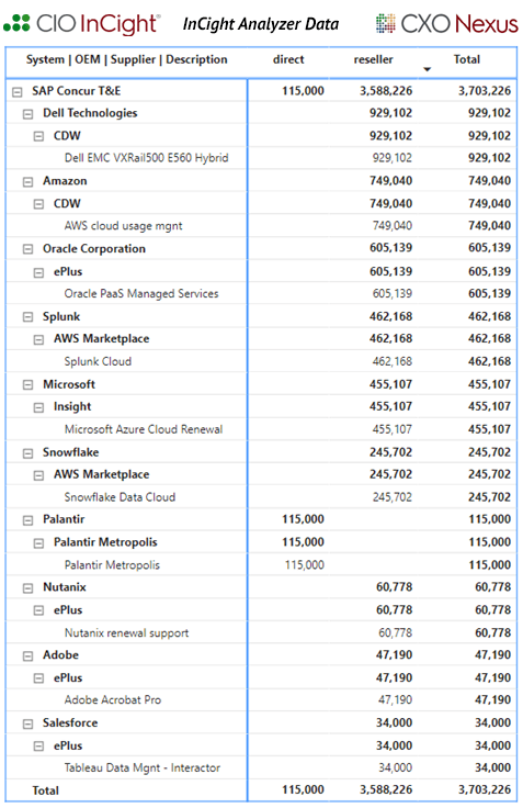 “We had started a project team to discover the Technology being purchased through T&E but had limited success due to the volume of purchasing and data obfuscation. With InCight’s intelligent automation the team can now act on the data to eliminate risk and reduce costs via leverage and consolidation of both vendors and suppliers. Case in point the BU led spend was comprised of redundant purchasing (Dell EMC, Splunk, Snowflake, Tableau, Adobe) that central IT makes. Via InCight we have the complete, real-time visibility into our vendor spend, how purchased (direct or indirect) and by Cost Center and Business Unit.”